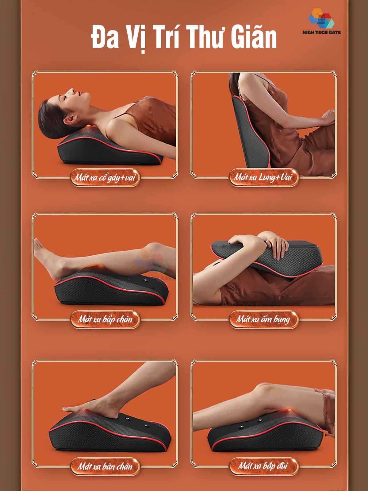 Gối Massage hồng ngoại đa năng - Sử dụng được cho toàn bộ cơ thể – cổ, vai, gáy, lưng trên, lưng dưới, cẳng chân và bàn chân - Thiết kế khoa học tăng thêm
