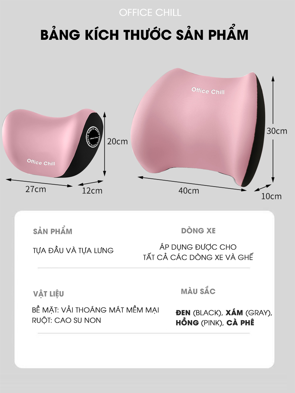 THÔNG TIN SẢN PHẨM GỐI TỰA ĐẦU TỰA LƯNG Ô TÔ: