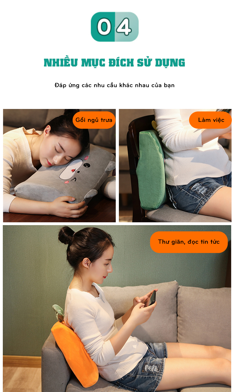 - Đệm lót ghế hình thú đa năng không chỉ mang lại cho bạn cảm giác thoải mái khi ngồi làm mà còn giúp cho góc làm việc trở nên xinh xắn hơn. - Sản