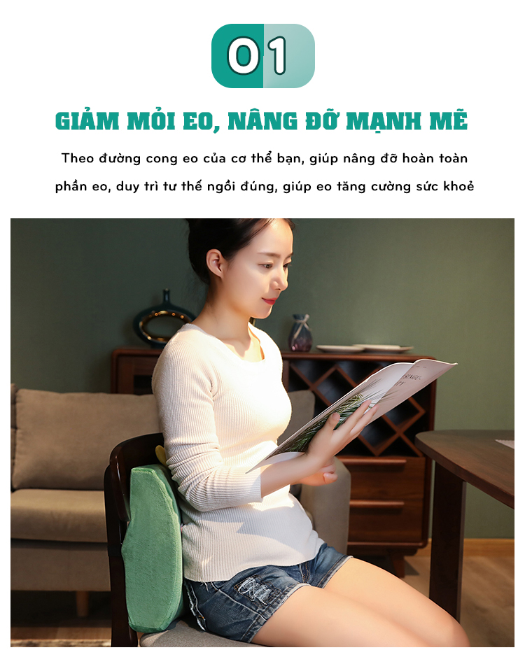 CÔNG DỤNG CỦA GỐI KÊ LƯNG EMA Giảm đau mỏi lưng dưới (vùng thắt lưng và eo) đặc biệt với đối tượng bà bầu, người cao tuổi, người thường xuyên phải mang vác hoặc cúi