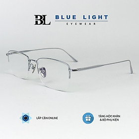 ✨Gọng Kính Cận, Kính Giả Cận Nam Nữ BLUE LIGHT TITANIUM Cao Cấp Siêu Nhẹ, Mắt Vuông Nửa Gọng, Màu Bạc, Đen