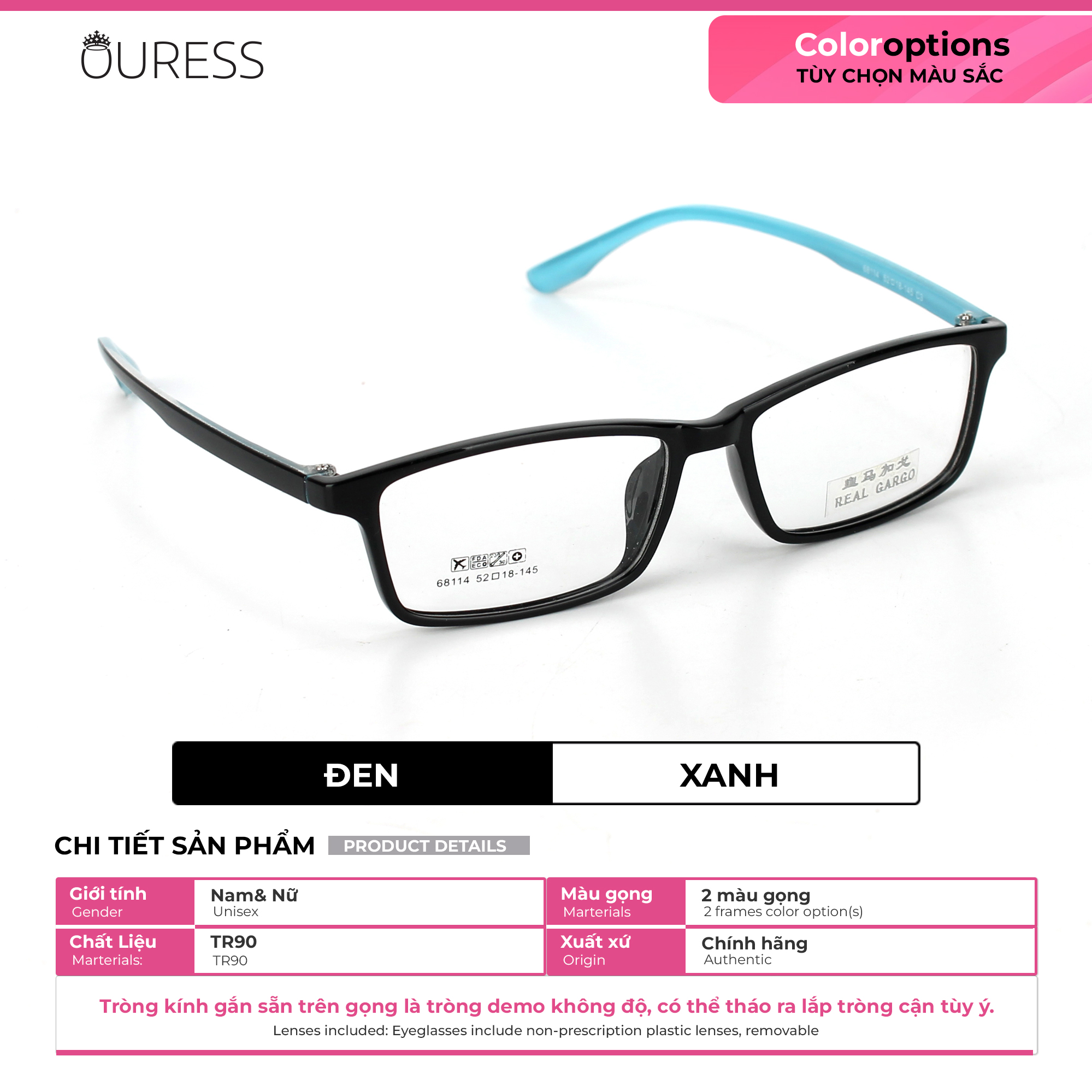 ✨Gọng kính nhựa 68114 thời trang nam nữ siêu nhẹ siêu bền OURESS