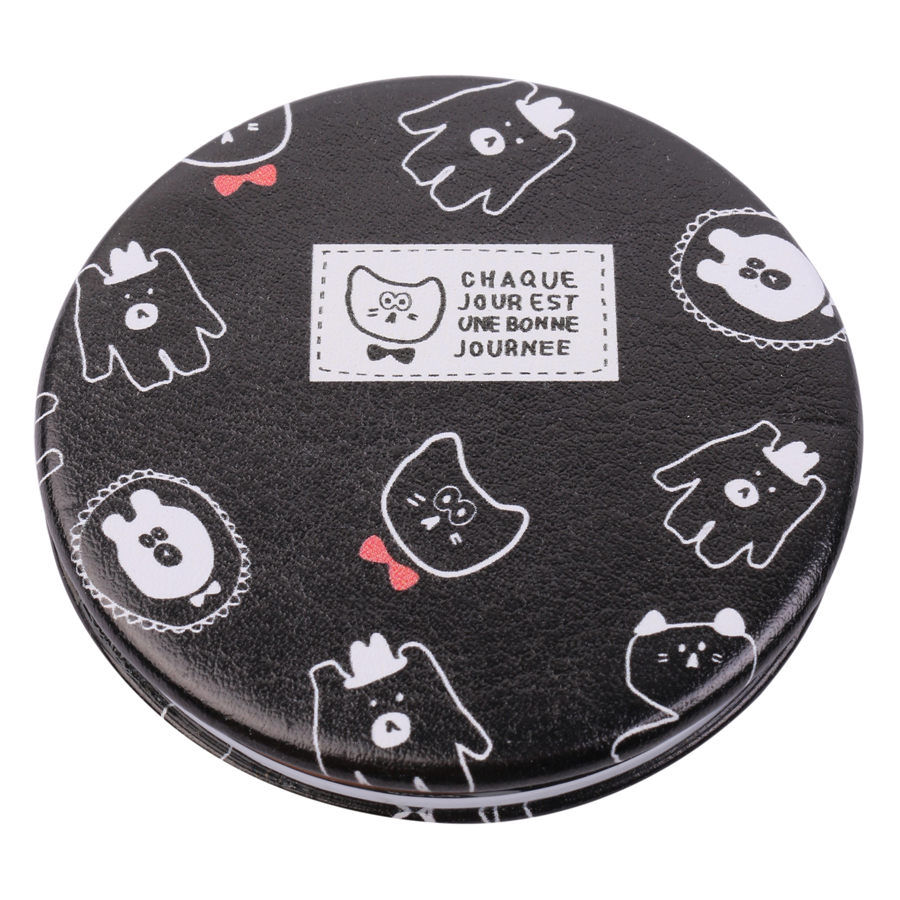 - Gương hình tròn có dạng nắp bật được trang trí bằng những hình ảnh, chi tiết hoạt hình thú vị, những dòng chữ mang ý nghĩa đáng yêu, màu sắc bắt mắt hẳn sẽ rất được lòng các chủ sở hữu.