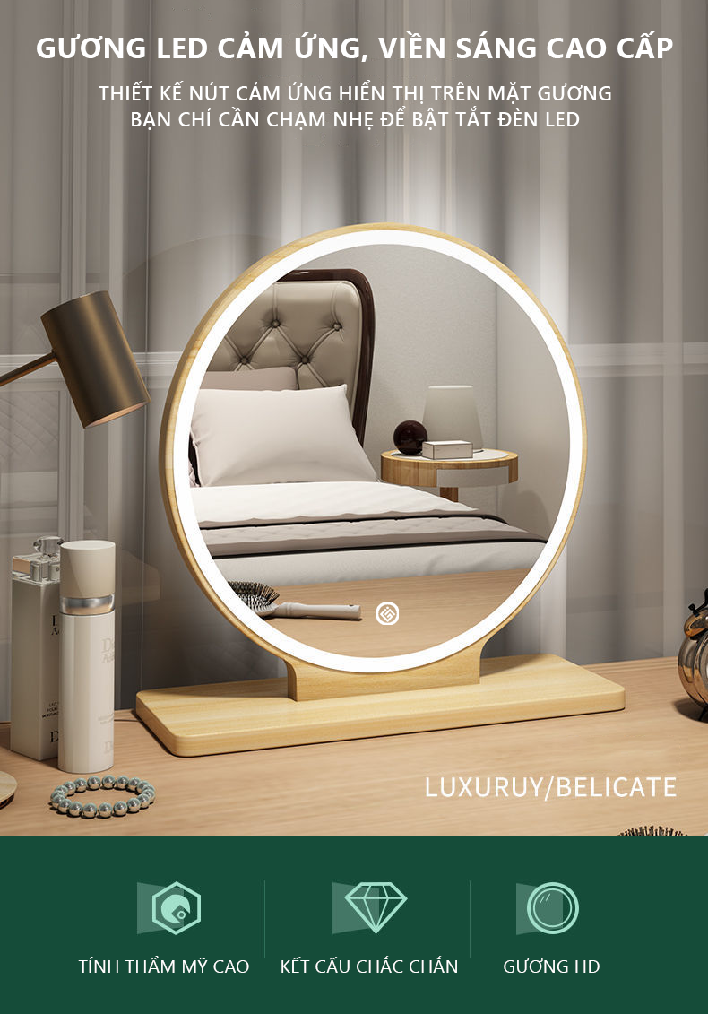 Bàn trang điểm gương đèn LED cảm ứng cho những cô nàng hiện đại