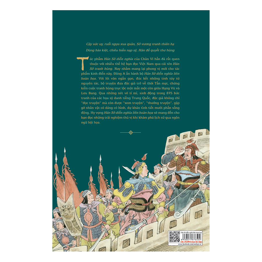 Tác phẩm Hán Sở diễn nghĩa của Chân Vĩ hẳn đã rất quen thuộc với nhiều thế hệ bạn đọc Việt Nam qua cái tên Hán Sở tranh hùng. Nay nhằm mang lại phong vị mới cho tác phẩm kinh điển này, Đông A ấn hành bộ Hán Sở diễn nghĩa liên hoàn họa. Với lời văn ngắn gọn, đúc kết những tinh túy từ nguyên tác, bộ truyện đưa độc giả trở về thời Tần mạt, chứng kiến cuộc tranh hùng trục lộc một mất một còn giữa Hạng Vũ và Lưu Bang.