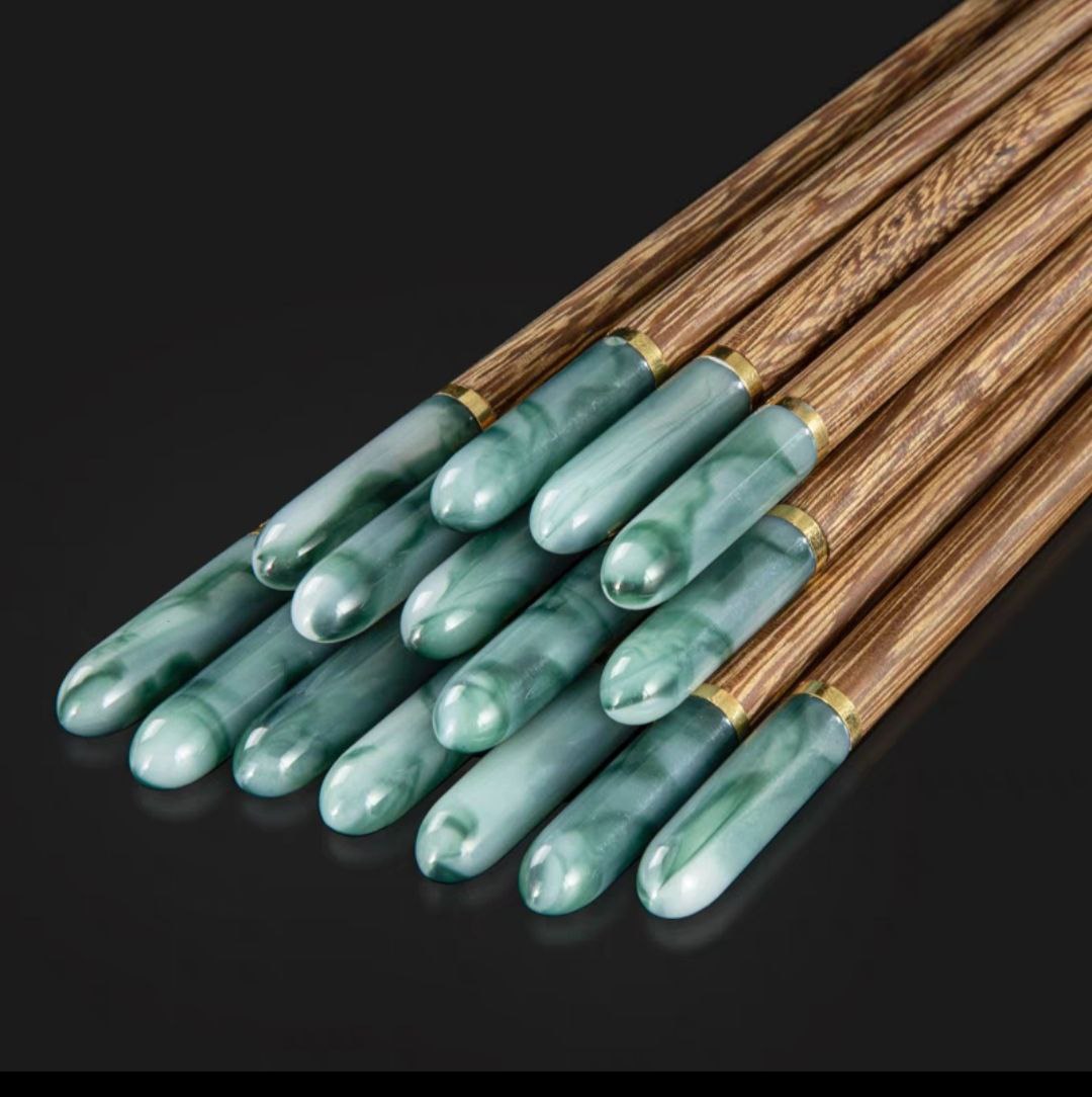 đũa Gỗ cánh gà được khẩm 2 màu ngọc bích ( màu Xanh )