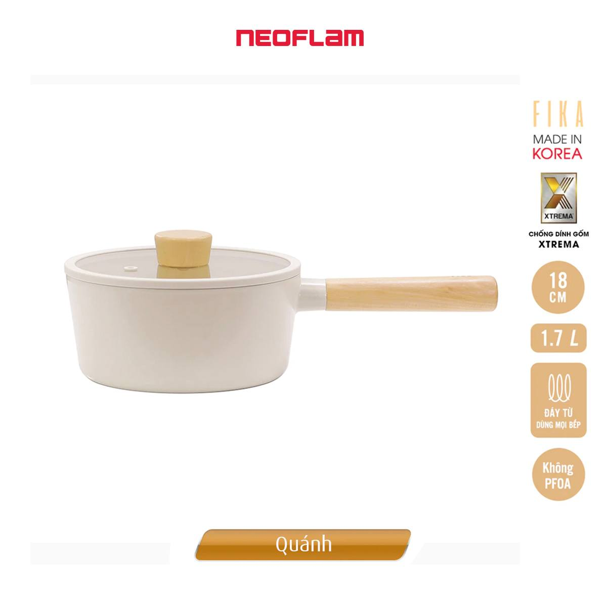 CHÍNH HÃNG NEOFLAM HÀN QUỐC. NHẬP KHẨU, PHÂN PHỐI TẠI VIỆT NAM SẢN PHẨM NỒI, CHẢO FIKA NEOFLAM (MADE IN KOREA). HÀNG CÓ SẴN GIAO NGAY Bộ gồm 3 món: nồi 18cm, nồi 22cm nông,