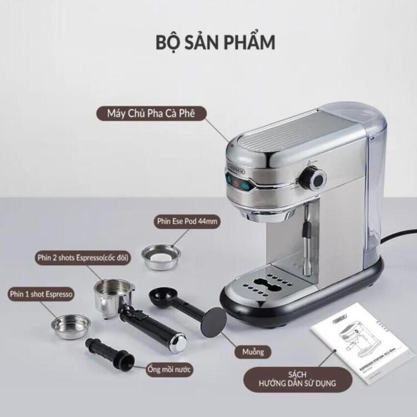 Bơm Italy áp suất 20 bar tạo ra tách cà phê đậm đà Công suất 1400W, điện áp 220-240V/50Hz-60Hz Gia nhiệt nhanh chóng, đảm bảo cà phê chiết xuất với nhiệt độ lý tưởng nhất