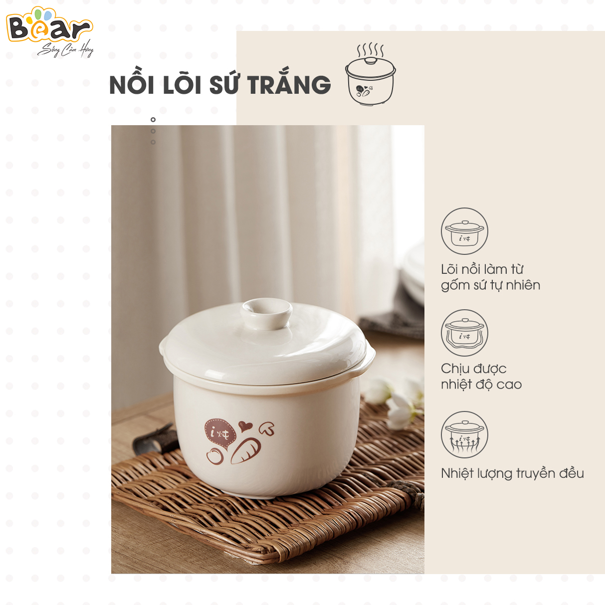 ️ An toàn: Ruột nồi bằng sứ cao cấp