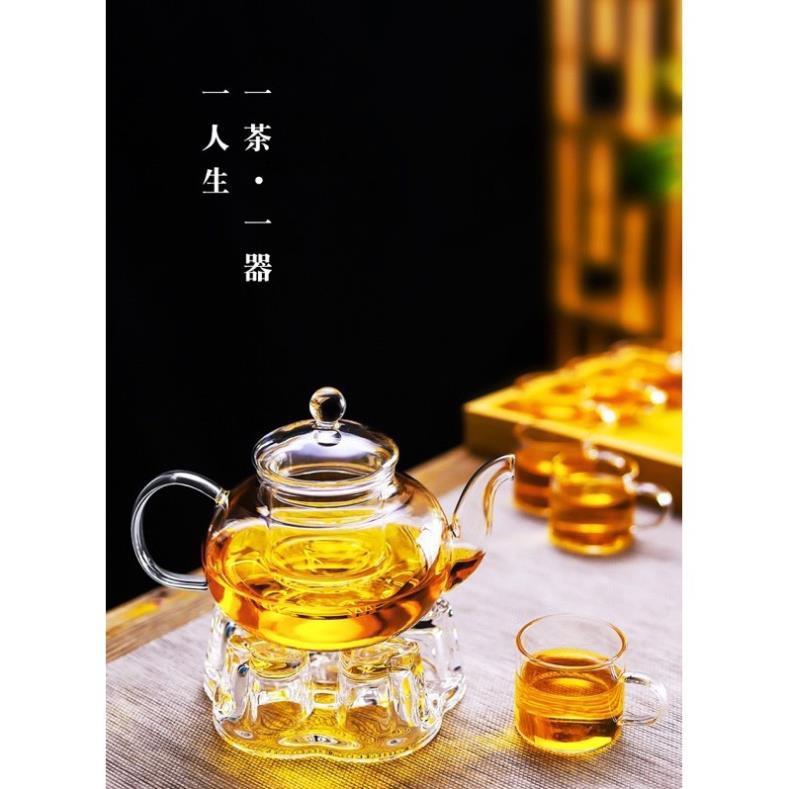 BỘ ẤM TRÀ THUỶ TINH CHỊU NHIỆT CÓ ĐẾ NẾN, BỘ ẤM CHÉN UỐNG TRÀ CAO CẤP 600ML