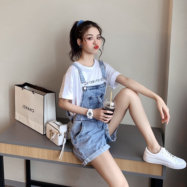 [ Shopee haul ] Quần yếm bò ngắn phong cách Hàn Quốc - baby , cá tính | cô tấm shopee