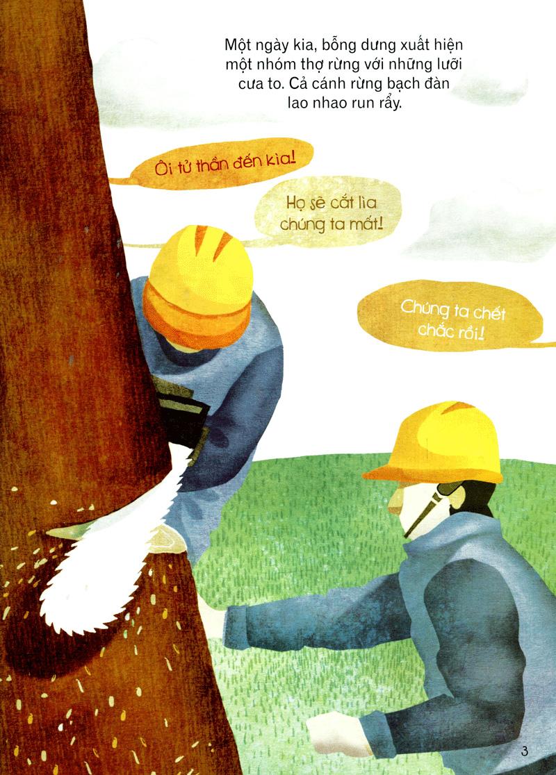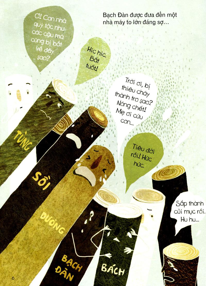 Bạch Đàn sống với đại gia đình ở ven rừng. Một hôm Bạch Đàn bị người ta đốn lìa khỏi gốc và đưa đi xa. Cậu ta rất hoảng sợ, tưởng mình bị tước đi sự sống. Thế rồi tại nhà máy nọ, trải qua bao phen gian khó tới tột cùng, Bạch Đàn được tái sinh dưới một hình hài mới, đẹp đẽ và vô cùng hữu ích. Bạn có biết đó là gì không?