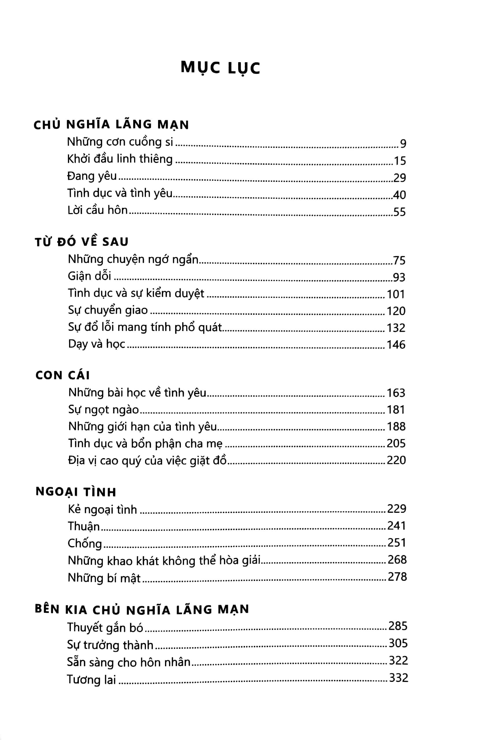 Cuốn sách được chính tác giả xếp vào hạng mục tiểu thuyết. Nhưng ngay từ những dòng đầu tiên, hẳn ai cũng sẽ băn khoăn tự hỏi liệu đây có thực sự là hư cấu. Rabih và Kristen có thể là bất kỳ cặp đôi nào ta biết. Họ có thể là chính ta. Và lồng ghép trong câu chuyện của họ – một câu chuyện lúc mê say khi tẻ ngắt như mọi chuyện tình thực sự – là những triết lý, đúc kết đầy soi chiếu của chính de Botton, cho ta trải nghiệm độc đáo của việc đọc tiểu thuyết, sách triết học và sách tâm lý cùng một lúc.