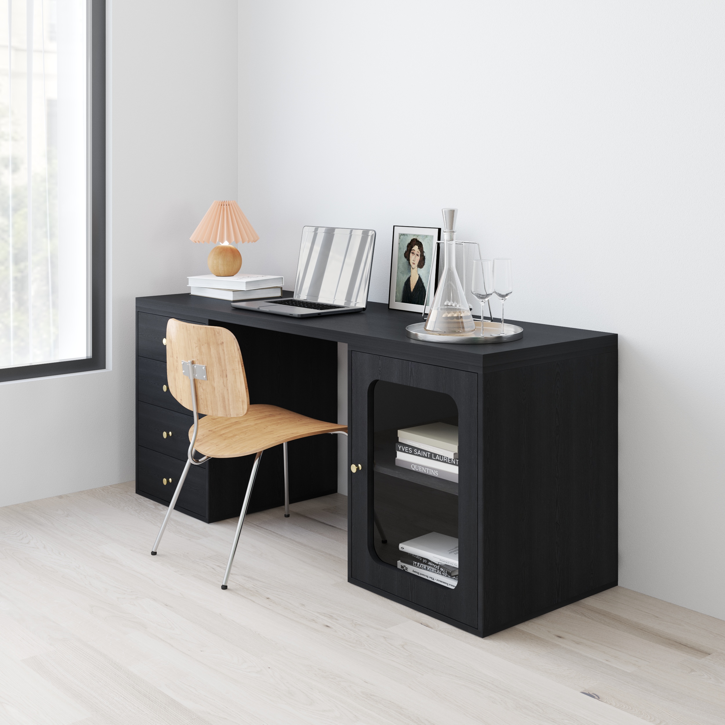 ✨HAPPY FURNITURE , Bàn làm việc 4 ngăn kéo 1 cửa kính - NOAH , BAN_160 , 180cm x 59cm x 75cm DxRxC