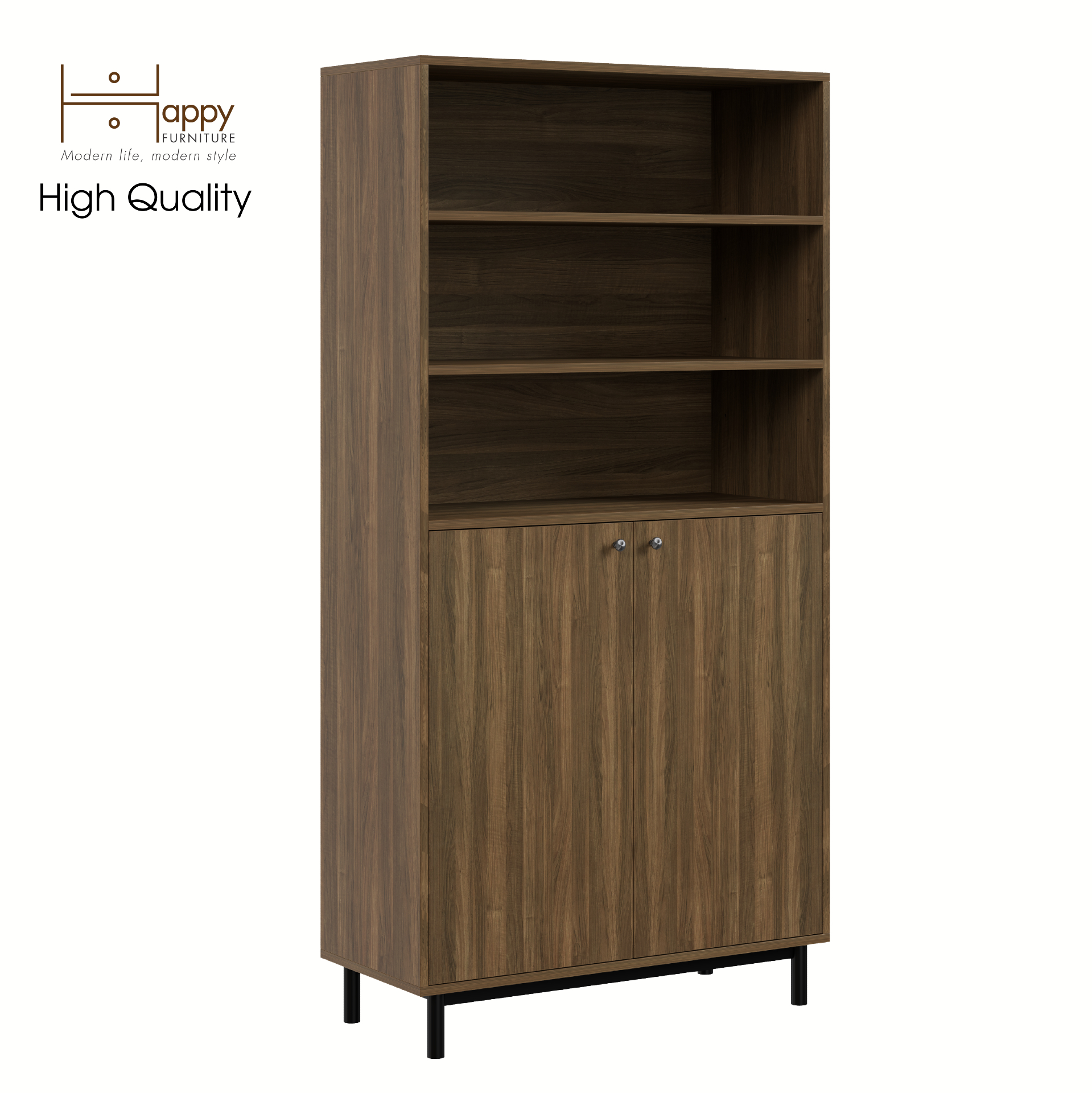 ✨[Happy Home Furniture] CATY , Kệ sách 6 tầng 2 cửa mở - chân sắt , 90cm x 40cm x 180cm (DxRxC), KSA_016