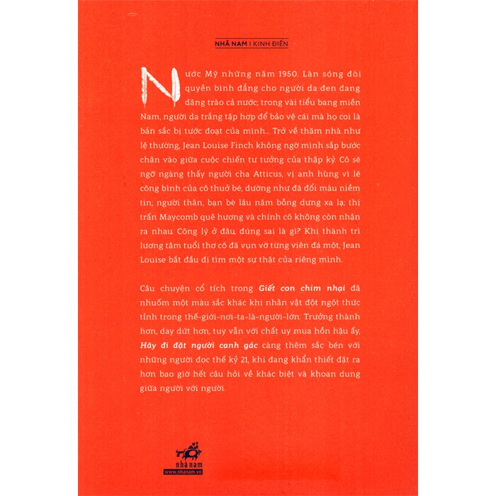 Nước Mỹ những năm 1950. Làn sóng đòi quyền bình đẳng cho người da đen đang dâng trào cả nước; trong vài tiểu bang miền Nam, người da trắng tập hợp để bảo vệ cái mà họ coi là bản sắc bị tước đoạt của mình… Trở về thăm nhà như lệ thường, Jean Louise không ngờ mình sắp bước chân vào giữa cuộc chiến tư tưởng của thập kỷ. Cô sẽ ngỡ ngàng thấy người cha Atticus, vị anh hùng vì lẽ công bình của cô thuở bé, dường như đã đổi màu niềm tin; người thân, bạn bè lâu năm bỗng dưng xa lạ; thị trấn Maycomb quê hương và chính cô không còn nhận ra nhau. Công lý ở đâu, đúng sai là gì? Khi thành trì lương tâm tuổi thơ cô đã vụn vỡ từng viên đá một, Jean Louise bắt đầu đi tìm một sự thật của riêng mình.