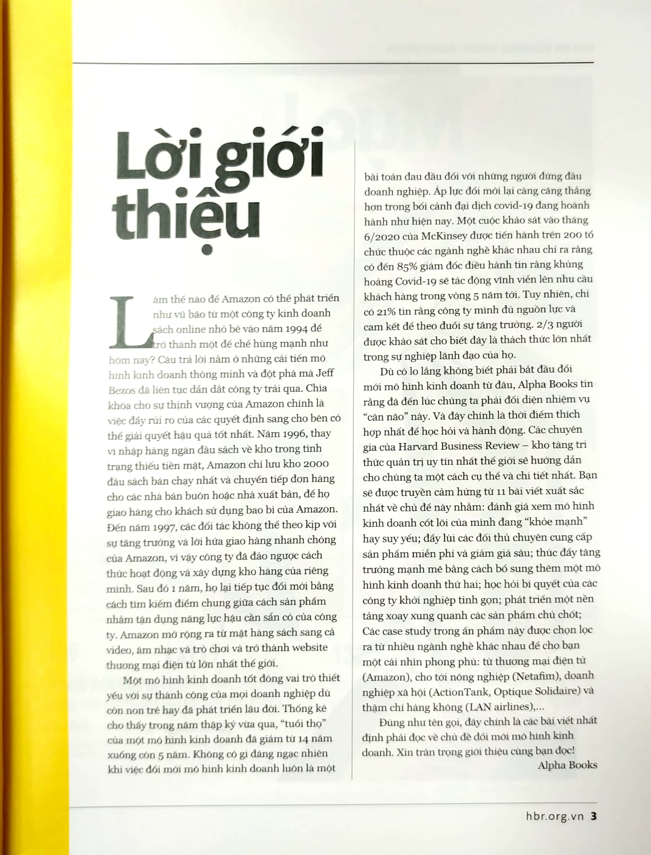 Ấn phẩm bao gồm 11 bài viết xuất sắc nhất về đổi mới mô hình kinh doanh để giúp bạn tiếp cận khách hàng mới và đi trước đối thủ. Bạn sẽ được truyền cảm hứng để: đánh giá xem mô hình kinh doanh cốt lõi của mình đang “khỏe mạnh” hay suy yếu; đẩy lùi các đối thủ mới gia nhập thị trường chuyên cung cấp sản phẩm miễn phí và giảm giá sâu; thúc đẩy tăng trưởng mạnh mẽ bằng cách bổ sung thêm một mô hình kinh doanh thứ hai; học hỏi bí quyết của các công ty khởi nghiệp tinh gọn; phát triển một nền tảng xoay xung quanh các sản phẩm chủ chốt; biến đổi mới mô hình kinh doanh trở thành một nguyên tắc được áp dụng thường xuyên trong công ty.
