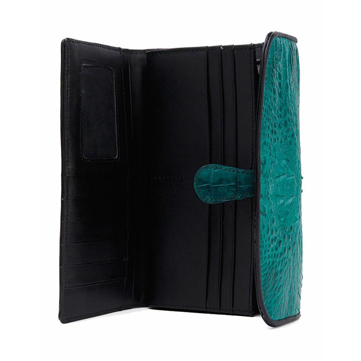 - Tên sản phẩm: HP3291 - Ví nữ Huy Hoàng da cá sấu 3 gấp nguyên con màu xanh lá