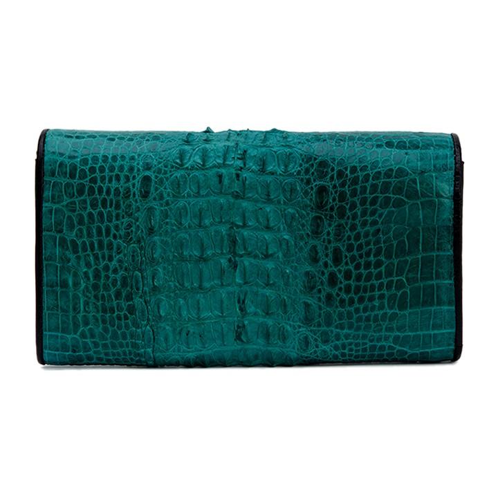 Túi xách nữ da cá sấu và ví cầm tay 3 gấp màu xanh lá của chị Linh đặt may. zalo 0976958076