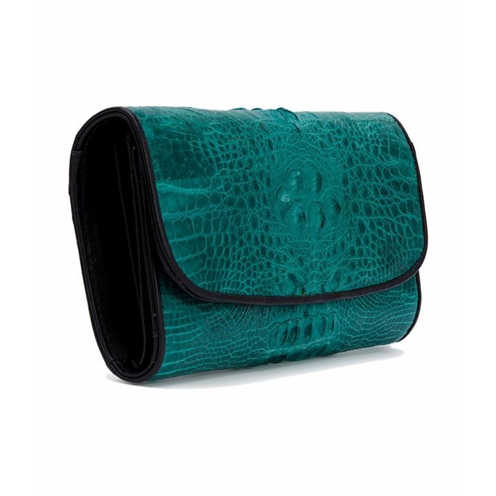 ✨HC3291 - Ví nữ Huy Hoàng da cá sấu 3 gấp nguyên con màu xanh lá