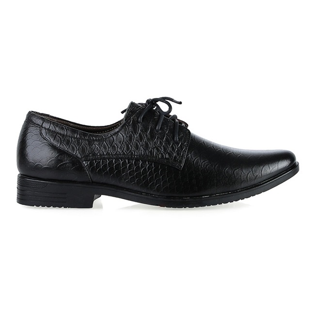 Giày tây nam Huy Hoàng da bò vân da trăn cột dây màu đen 7798