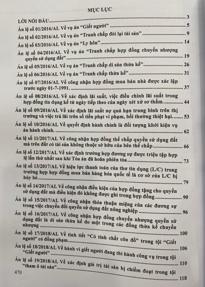 Sách- Hệ Thống 70 Án Lệ Đã Được Hội Đồng Thẩm Phán Tòa Án Nhân Dân Tối Cao Thông Qua