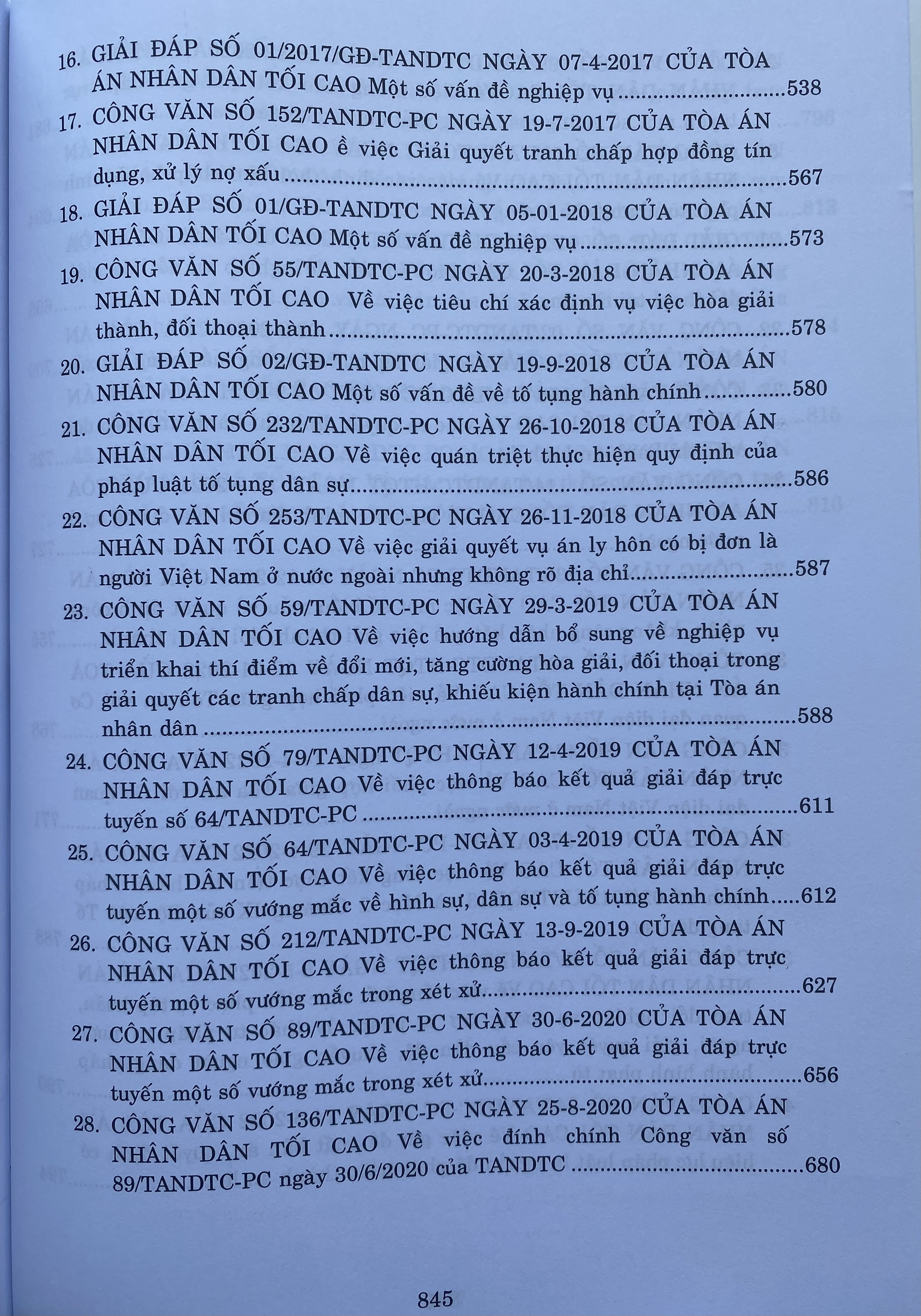 “Hệ thống 70 Án lệ và các Giải đáp vướng mắc trong nghiệp vụ xét xử của Tòa án nhân dân tối cao từ năm 2016 đến nay”.