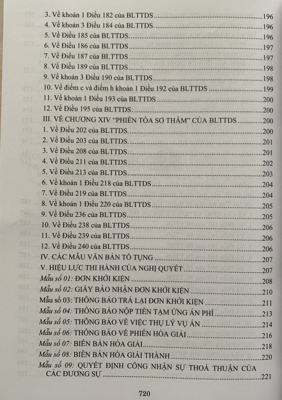 Phần II. Hệ thống các Nghị quyết của Hội đồng Thẩm phán Tòa án nhân dân tối cao về tố tụng dân sự
