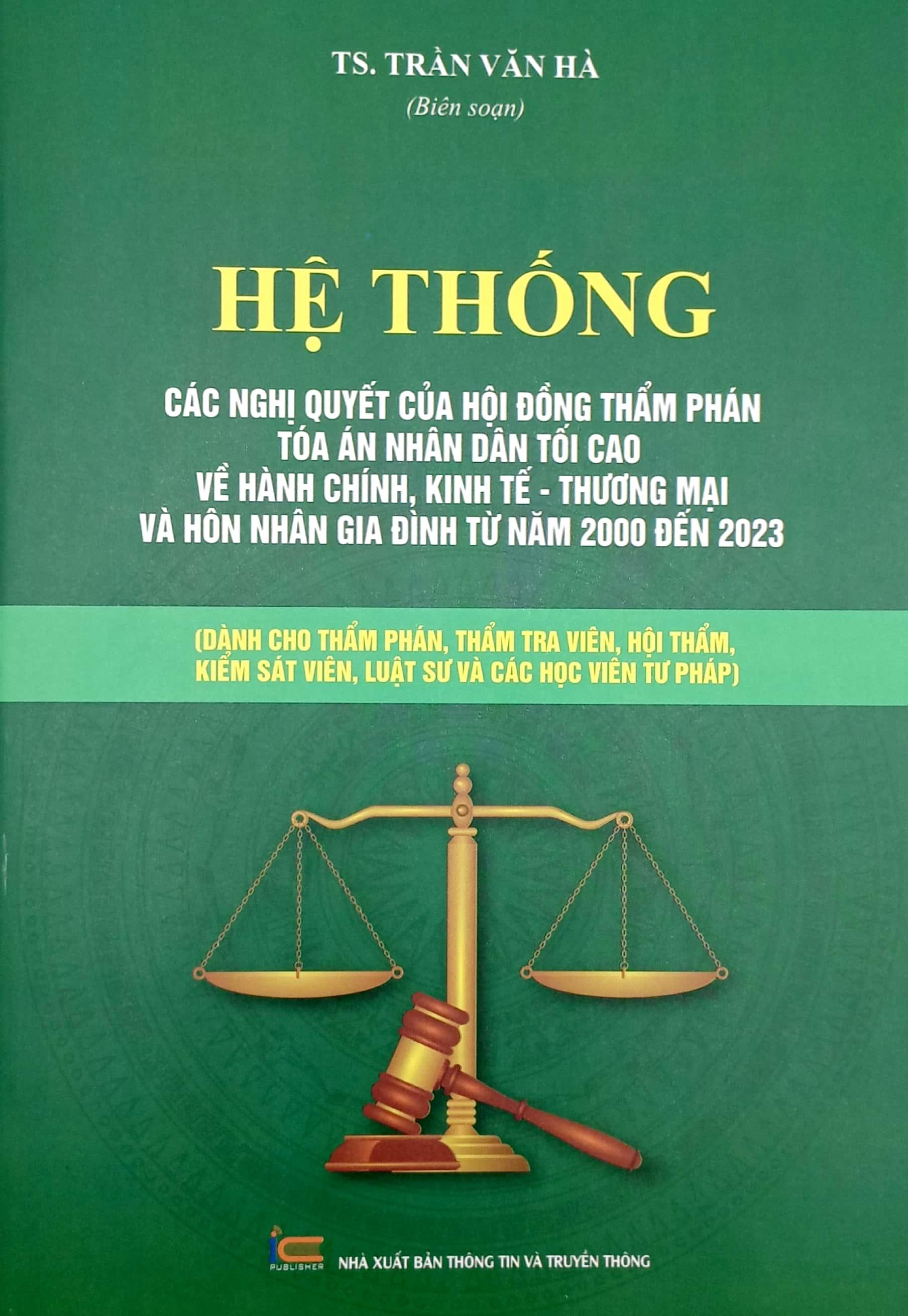 Nhằm kịp thời thông tin đầy đủ, chính xác và có hệ thống các Nghị quyết của Tòa án nhân dân tối cao về hành chính, kinh tế – thương mại và hôn nhân gia đình, Tiến sĩ Trần Văn Hà bên Vụ Pháp chế và Quản lý Khoa học – Tòa án nhân dân tối cao đã biên soạn cuốn sách:
