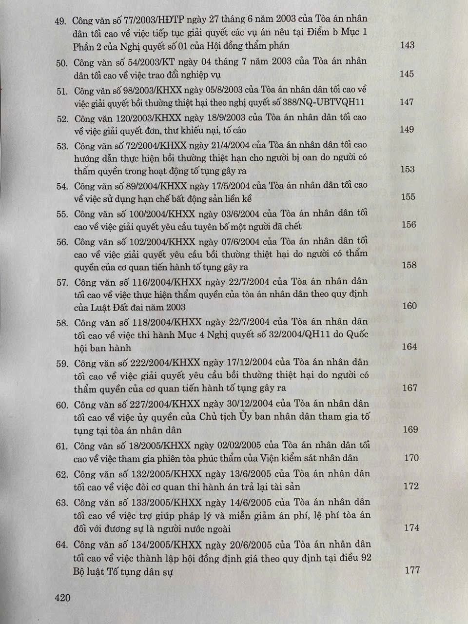 Để thuận tiện cho việc nghiên cứu, tìm hiểu, vận dụng trong quá trình thực hiện nhiệm vụ xét xử của Tòa án; giúp các cơ quan, tổ chức, cá nhân quan tâm tới hoạt động của Tòa án có thể tiếp cận với các Công văn hướng dẫn nghiệp vụ đã ban hành trong nhiều năm qua và tạo nguồn tham khảo cho các hoạt động giảng dạy, nghiên cứu khoa học của các cơ quan, tổ chức, cá nhân, Nhà xuất bản Lao Động xuất bản và phát hành cuốn: “Hệ thống Công văn hướng dẫn nghiệp vụ của Tòa án nhân dân tối cao trong lĩnh vực Dân sự và Tố tụng Dân sự từ năm 1986 đến năm 2023”.