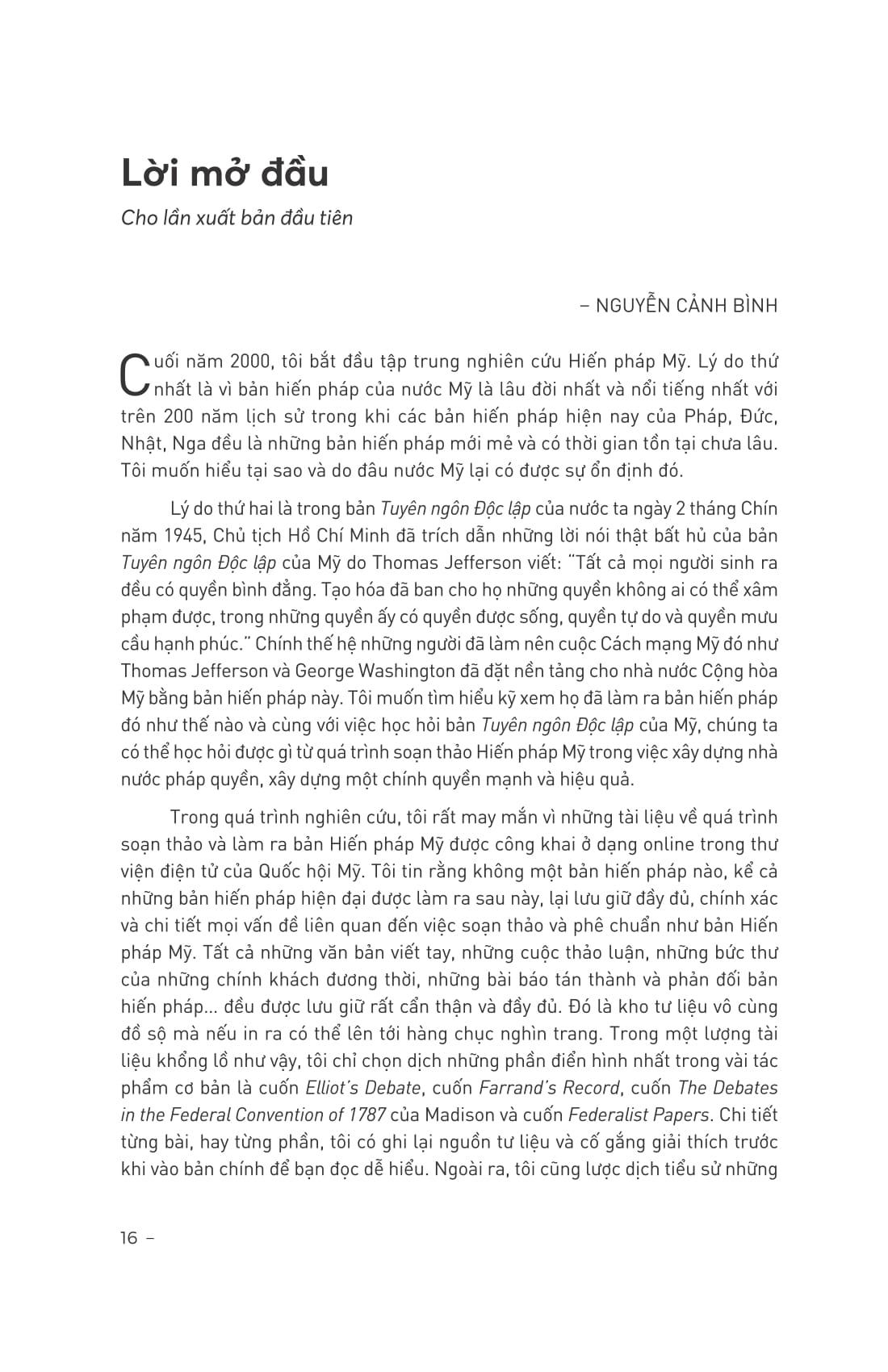 Đây là ấn bản “Hiến pháp Mỹ được làm ra như thế nào?” tái bản kỷ niệm 20 năm xuất bản lần đầu tiên. Phiên bản này không chỉ thay đổi hình thức bìa, hình thức dàn trang trong sách, mà còn bổ sung thêm Lời giới thiệu cho ấn bản mới, Lời cảm ơn của tác giả Nguyễn Cảnh Bình và phần đánh giá của các chuyên gia và độc giả.