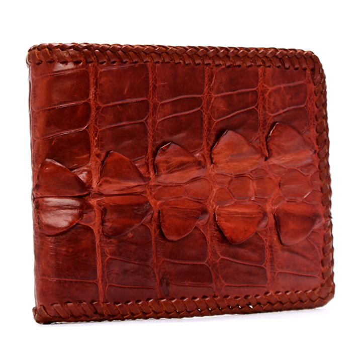 Ví/Bóp nam Huy Hoàng da bò vân cá sấu màu nâu đỏ 2148