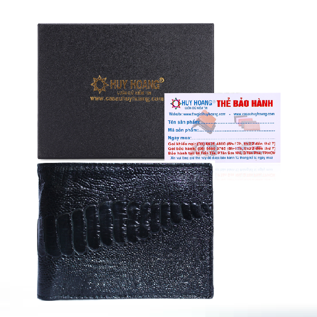 - Bóp nam Huy Hoàng được làm bằng chất liệu da đà điểu cao cấp tạo kiểu dáng lạ mắt, sang trọng.