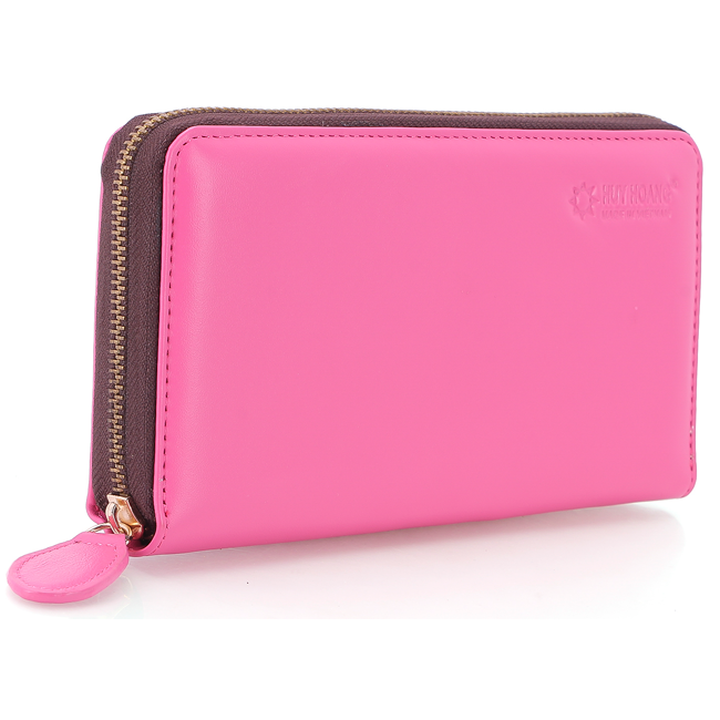 Ví/Bóp nữ da bò Huy Hoàng cao cấp 1 khóa màu hồng 3146