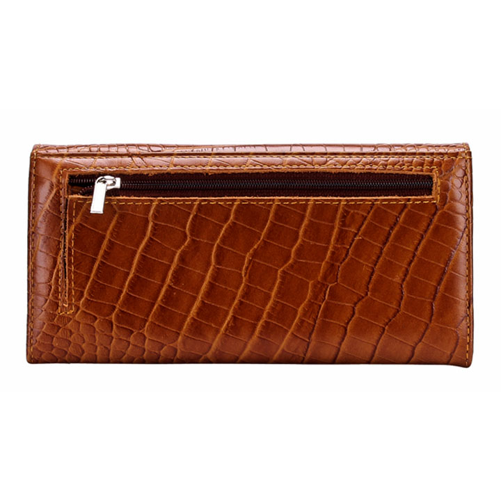 Ví/Bóp nữ da bò Huy Hoàng vân cá sấu lớn 3 gấp màu nâu đỏ 3154