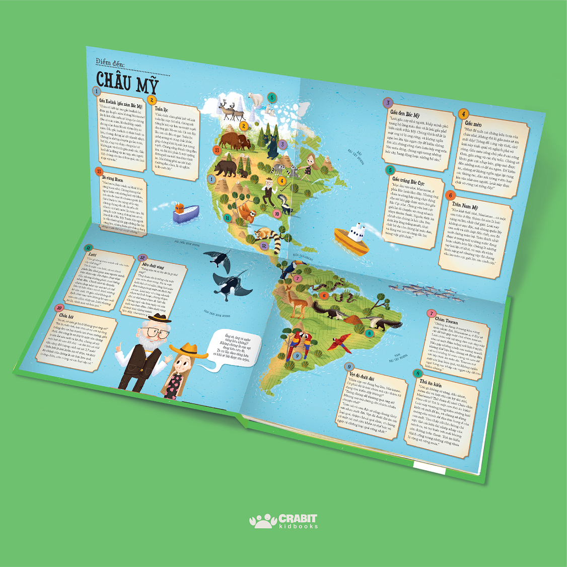 Với những cô nhóc cậu nhóc hay tò mò, muốn khám phá thế giới bao la ngoài kia thì bộ sách “Hỏa xa phiêu lưu ký” đích thực là một kho báu! Bộ sách sẽ mời trẻ bước lên chuyến tàu hỏa độc nhất vô nhị, đưa trẻ chu du vòng quanh thế giới và mỗi lần dừng chân là trẻ đang ở một lục địa mới. Tại mỗi trạm dừng, trẻ sẽ được “cấp cho” một chiếc bản đồ lật mở khổng lồ, đóng vai trò như một “hướng dẫn viên du lịch” giúp trẻ tìm tòi và khám phá những điều vô cùng hay ho ở châu lục đó. Chẳng hạn khi đặt chân đến châu Âu, trẻ sẽ biết được Phần Lan là “đất nước có nhà tắm hơi còn nhiều hơn cả ô tô”, biết được cây cầu dài nhất thế giới nối liền hai quốc gia là Đan Mạch và Thủy Điển, biết được thiên nga trắng là một trong những loài chim nặng nhất thế giới (có em nặng đến 12 kg lận đó). Các thông tin về địa lý, văn hóa, món ăn truyền thống, động vật đặc hữ ở từng châu lục được chọn để giới thiệu với trẻ đều là những thông tin mới mẻ, thú vị, đảm bảo đưa trẻ đi từ bất ngờ này đến bất ngờ khác và không thể dừng chuyến hành trình tàu hỏa đặc biệt này được một khi đã bước chân lên tàu!