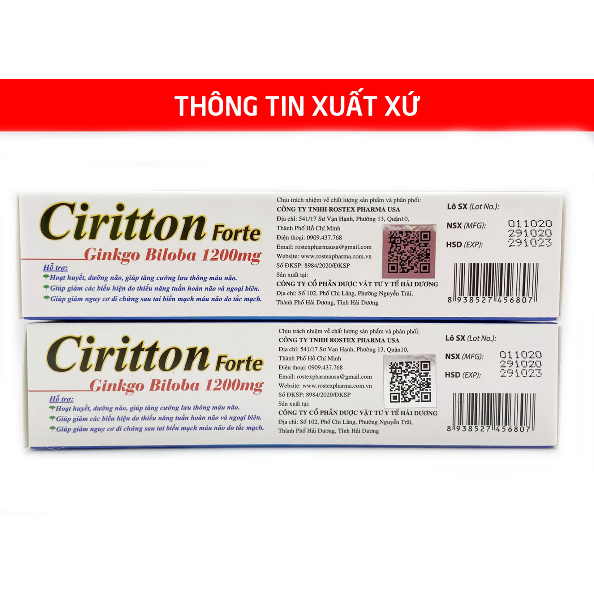 ✨Hoạt huyết dưỡng não Ciritton Forte Ginkgo Biloba 1200mg giúp tăng cường lưu thông máu, tuần hoàn, giảm tai biến Hộp 30 viên