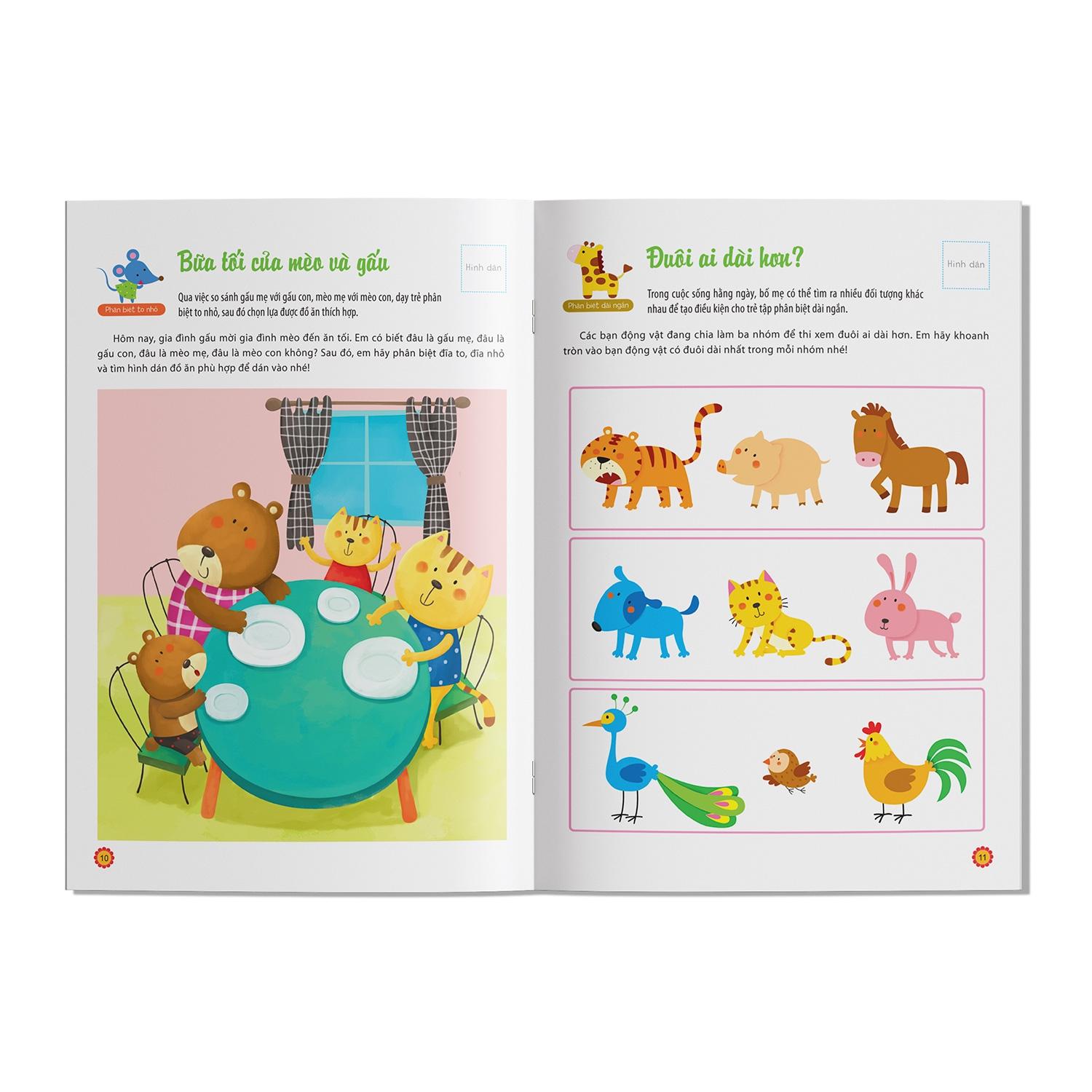 Điểm thú vị của bộ sách là những câu hỏi, bài tập được trình bày rất sống động, đầy màu sắc, sẽ kích thích được sự yêu thích, ham học hỏi của trẻ. Với những hình dán Tuyệt vời, Rất tốt, Rất thông minh, Đủ tiêu chuẩn, Cần cố gắng… để đánh giá từng bài tập, bố mẹ hãy khuyến khích, cổ vũ con mình học toán.
