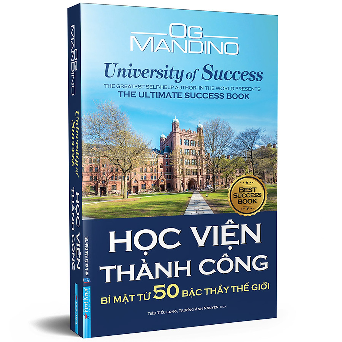 - Giảng đường dạy thành công của 50 bậc trí tuệ sắc sảo, vĩ đại nhất thế giới – UNIVERSITY OF SUCCESS – The Greatest Self-Help Author in the World Presents the Ultimate Success Book Những lời dạy thông thái của các bậc thầy về thành công Bạn có trong tay tất cả mọi thứ được cho là có thể tạo ra một cuộc sống như mơ – kiến thức, kỹ năng, sự sung túc… nhưng chúng có ích gì nếu bạn không biết cách sử dụng? Thành công luôn là đích đến của mỗi người, là niềm khát khao mà ai cũng nỗ lực tìm kiếm. Bạn dành rất nhiều năm ở trường học để tích luỹ kiến thức từ thầy cô, nhưng chẳng có một bài học cụ thể hay công thức cố định nào dạy bạn cách thành công. Chúng ta được dạy rằng phải mơ lớn nhưng chẳng mấy ai biết làm thế nào để bắt đầu biến những giấc mơ thành hiện thực. “Học viện thành công” sẽ giúp bạn làm được điều đó. Og Mandino – tác giả truyền cảm hứng hàng đầu thế giới, cây bút đứng sau những cuốn sách bán chạy nhất, theo New York Times – sẽ thành lập một “học viện” dạy về thành công thông qua cuốn sách này. Sự khác biệt mà Og Mandino tạo ra trong cuốn sách là ông đã tập hợp đội ngũ giảng dạy gồm những con người vĩ đại nhất để dạy về chủ đề thành công và làm thế nào để đạt được nó. “Dale Carnegie, J. Paul Getty, bác sĩ Maxwell Maltz, Napoleon Hill, P. T. Barnum, Norman Vincent Peale, Tiến sĩ Wayne W. Dyer, W. Clement Stone, Dorothea Brande, Richard DeVos, Benjamin Franklin, Lord Beaverbrook, Joyce Brothers – đó chỉ là vài ví dụ trong số năm mươi trí tuệ sắc sảo được tập hợp cùng nhau lần đầu tiên trong lịch sử để thỏa mãn mơ ước của tôi nhiều năm qua – xuất bản một cuốn sách về thành công đỉnh cao mà chỉ những bậc thầy đã được công nhận về chủ đề đó mới được phép cố vấn, giảng dạy và hướng dẫn bạn.” Og Mandino chia sẻ. “Học viện thành công” của Og Mandino được xây dựng như một ngôi trường với chương trình học kéo dài 5 năm, bao gồm 8 học kỳ chính và thêm 2 học kỳ thực tập sau khi tốt nghiệp. Tuy nhiên, bạn không cần tốn tới 5 năm để học chương trình này, bạn chỉ cần đọc hết cuốn sách “Học viện thành công” và áp dụng những triết lý thành công đã được chứng minh hiệu quả bởi những cá nhân vĩ đại nhất. Og Mandino khuyến khích bạn nên đọc một bài mỗi ngày, như vậy, bạn sẽ chỉ mất 50 ngày để hoàn thành chương trình của học viện và sẵn sàng để bước đến thành công. Sau khi xem xét thận trọng, Og Mandino đã sắp xếp các bài học theo thứ tự hợp lí để hỗ trợ bạn trong quá trình chuyển biến dần dần: từ con người của hiện tại trở thành con người mà bạn mong muốn – hạnh phúc, thịnh vượng và thành công. Năm thứ nhất, bạn được hướng dẫn cách định hình bản thân, đọc vị các nguyên nhân dẫn đến thất bại và tận dụng khả năng nắm lấy cơ hội. Năm thứ hai, bạn sẽ biết cách biến suy nghĩ thành hiện thực, và sử dụng sức mạnh để thay đổi cuộc sống. Năm thứ ba, bạn sẽ học được cách loại bỏ các thói quen xấu, thiết lập cách làm việc hiệu quả, gia tăng giá trị bản thân. Năm thứ tư, các giáo sư mang đến những bài giảng về cách làm chủ cuộc đời, sống chung với căng thẳng, tự mang may mắn và cơ hội đến cho bản thân. Năm cuối, sau khi lĩnh hội những công cụ để dẫn đến thành công ở 30 bài giảng trước đó, bạn sẽ học được cách giữ lửa thành công qua các bài học về tận hưởng mọi điều tốt đẹp của cuộc đời, chuẩn bị một tâm hồn đủ đầy và biết cách vực dậy sau thất bại. Phần thưởng lớn nhất học viên nhận được cho những nỗ lực sẽ là nhận thức giúp đổi thay cuộc sống theo hướng tốt đẹp hơn. Hiển nhiên, trong ngôi trường này cũng chẳng có bài kiểm tra đầu vào, tất cả những gì cần chuẩn bị là một khát khao cháy bỏng, một tinh thần học hỏi và sẵn sàng thay đổi. Qua những câu chuyện thú vị, trải nghiệm thực tế, dưới cái nhìn đa chiều, “Học viện thành công” không vẽ vời sự thịnh vượng trên con đường màu hồng rực rỡ mà cung cấp kiến thức thực tế, giúp bạn có thêm kỹ năng, động lực và niềm tin để vượt qua những khuyết điểm của bản thân, tạo dựng thành công cho riêng mình. Bạn đọc nói gì về cuốn sách này “Bất kỳ bạn là ai, đang ở giai đoạn nào của cuộc đời, đều có thể lĩnh hội và kết nối với những bài học có giá trị vượt thời gian trong ‘Học viện thành công’. Những thông tin mà cuốn sách cung cấp có thể được tiếp thu từng chút một mà không khiến chúng ta cảm thấy bị choáng ngợp.” - Độc giả Brian chia sẻ trên Goodreads. “Nếu bạn dành cả đời để tìm kiếm những bậc thầy về truyền động lực, thì đây là cuốn sách dành cho bạn! Những người thầy vĩ đại nhất mọi thời đại đã được tập hợp lại với nhau và dạy cho bạn cách để đạt được thành công.” - Độc gi