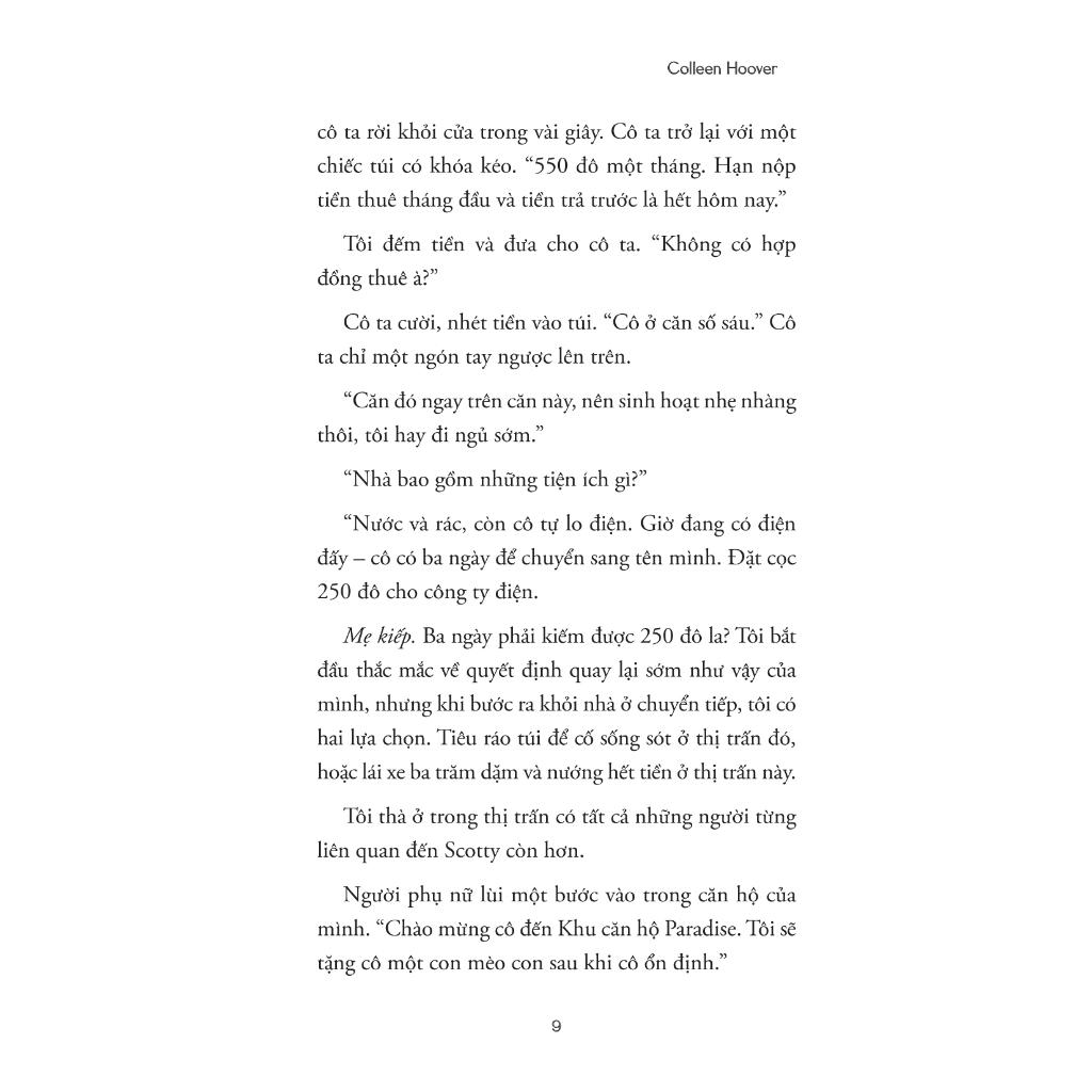 “Cuốn sách mới của Colleen Hoover sẽ xé nát rồi chữa lành trái tim bạn… Một tuyệt tác đầy cảm động về mất mát và hy vọng, nỗi hối hận và tha thứ, và rằng tình yêu có thể chữa lành mọi thứ.” ―POPSUGAR