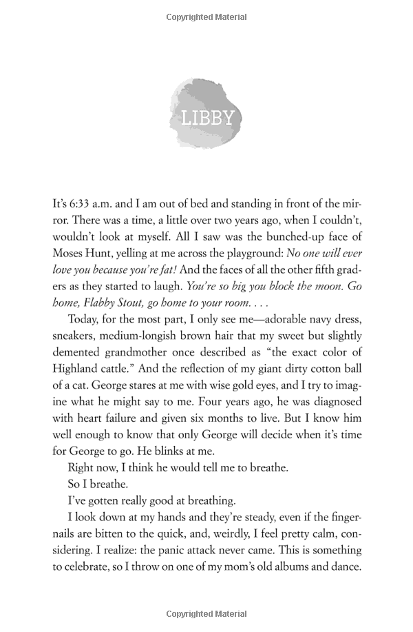 Everyone thinks they know Libby Strout, the girl once dubbed 'America's Fattest Teen'. But no one's taken the time to look past her weight to get to see who she really is. Since her mum's death, she's been picking up the pieces in the privacy of her home, dealing with her heartbroken father and her own grief. Now, Libby's ready: for high school, for new friends, for love, and for EVERY POSSIBILITY LIFE HAS TO OFFER. I know the part I want to play here at MVB High. I want to be the girl who can do anything.