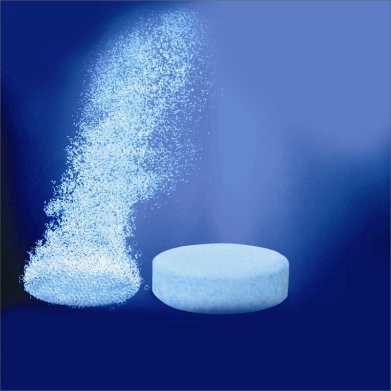(Sự khác biệt rõ rệt trước và sau khi sử dụng) (Viên sủi nồng độ cao, không để lại cặn) Thành phần chính là Natri bicarbonate Citric Acid Surfactant, khi gặp nước sẽ xảy ra