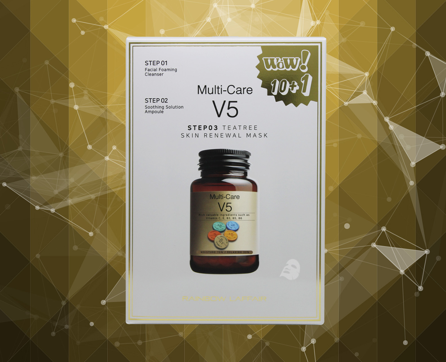 Mua tại TiktokHộp mặt nạ Trị Mụn, Kiềm Dầu, Dưỡng Ẩm, Nâng Cơ Mặt 3 Bước Rainbow L'affair Multi - Care V5 Teatree Cleanser: