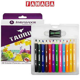 Hộp 12 Bút Chì Màu Ngắn - Kores Ambassador Ngòi chì êm, cho màu sắc tươi sáng, đều, mịn, không làm rách giấy. Thân bút cầm vừa tầm tay, không trơn tuột, khi chuốt không