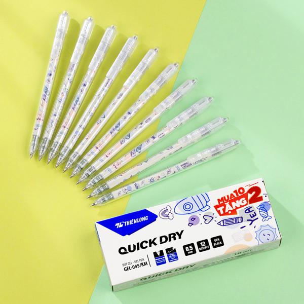 Hộp 12 Bút Gel Quick Dry 0.5 mm - Thiên Long GEL-045/KM - Mực Đen - Bút Gel là nhãn hàng Bút viết ra đời nhằm mang đến sự tiện lợi, thoải mái cho người