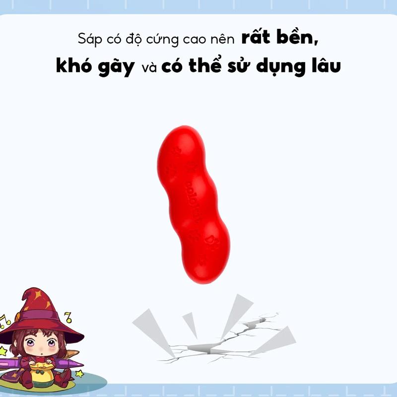 Sản phẩm gồm 12 bút sáp màu khác nhau thích hợp cho trẻ em khi bắt đầu tập tô màu.
