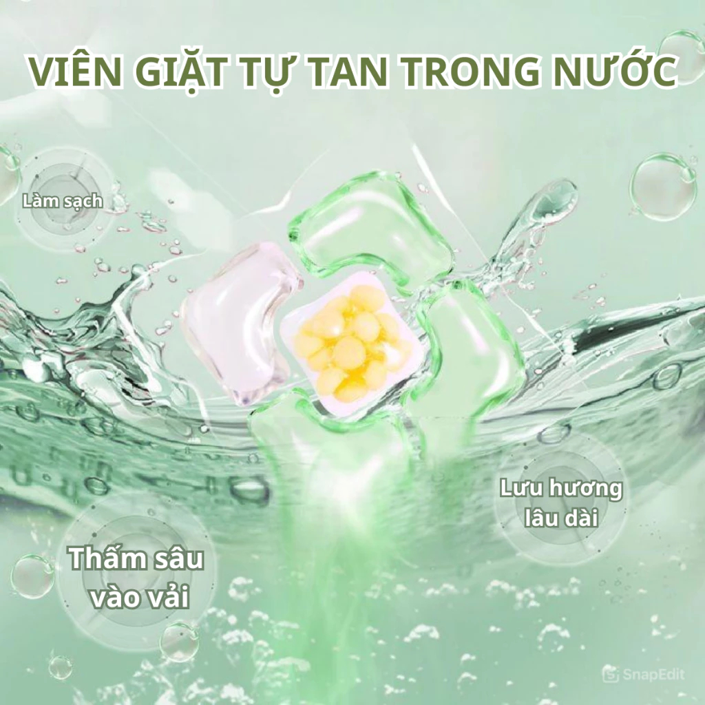 - Đơn giản, hiệu quả chỉ với 1 viên đã bao gồm nước giặt nước xả vải và hạt lưu lương giúp cho việc giặt quần áo trở nên nhẹ nhàng hơn.