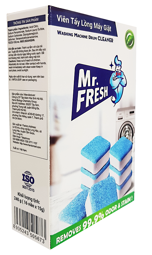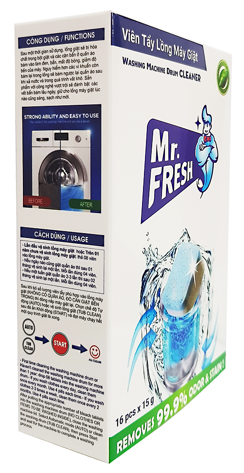 THÔNG TIN SẢN PHẨM: Hộp 16 viên tẩy lồng máy giặt Mr Fresh 240g (15g/viên)