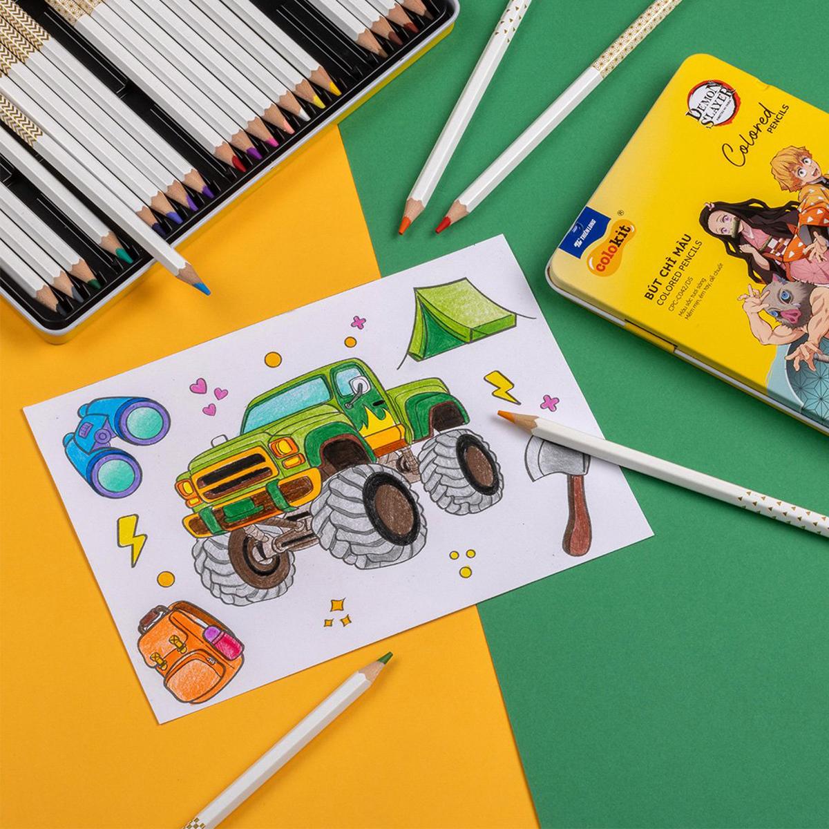 Hộp 24 Bút Chì Màu Thanh Gươm Diệt Quỷ - Colokit CPC-C043/DS - Hộp Thiếc - Thiết kế thân bút bằng gỗ với phần ruột chì mềm, bền, dễ chuốt hạn chế gãy ngòi khi
