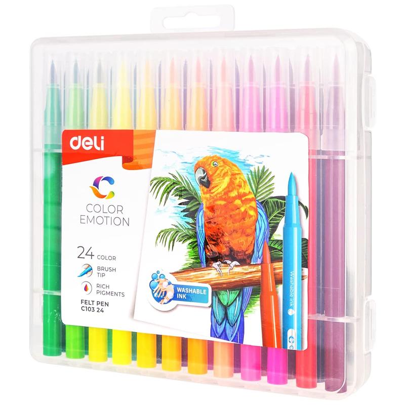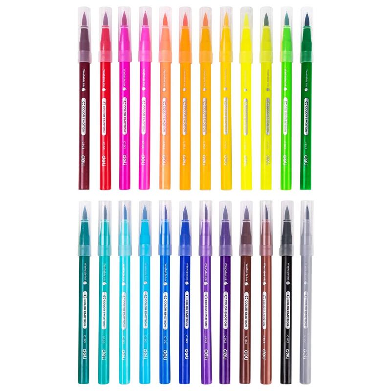Hộp 24 Bút Lông Màu Cọ Mềm - Deli EC10324 Bút lông màu mềm, lướt êm, mực ra đều, giúp viết và vẽ nhanh, đẹp. Nét mực có độ dày và độ đậm vừa phải,